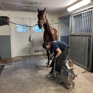 Idag har vi haft några duktiga elever från Strömsholms hovslagarutbildning på plats i stallet. De har under dagen fått hjälpa till att sko både unghästar och tävlingshästar med olika typer av hovbeslag, något de fixat galant!